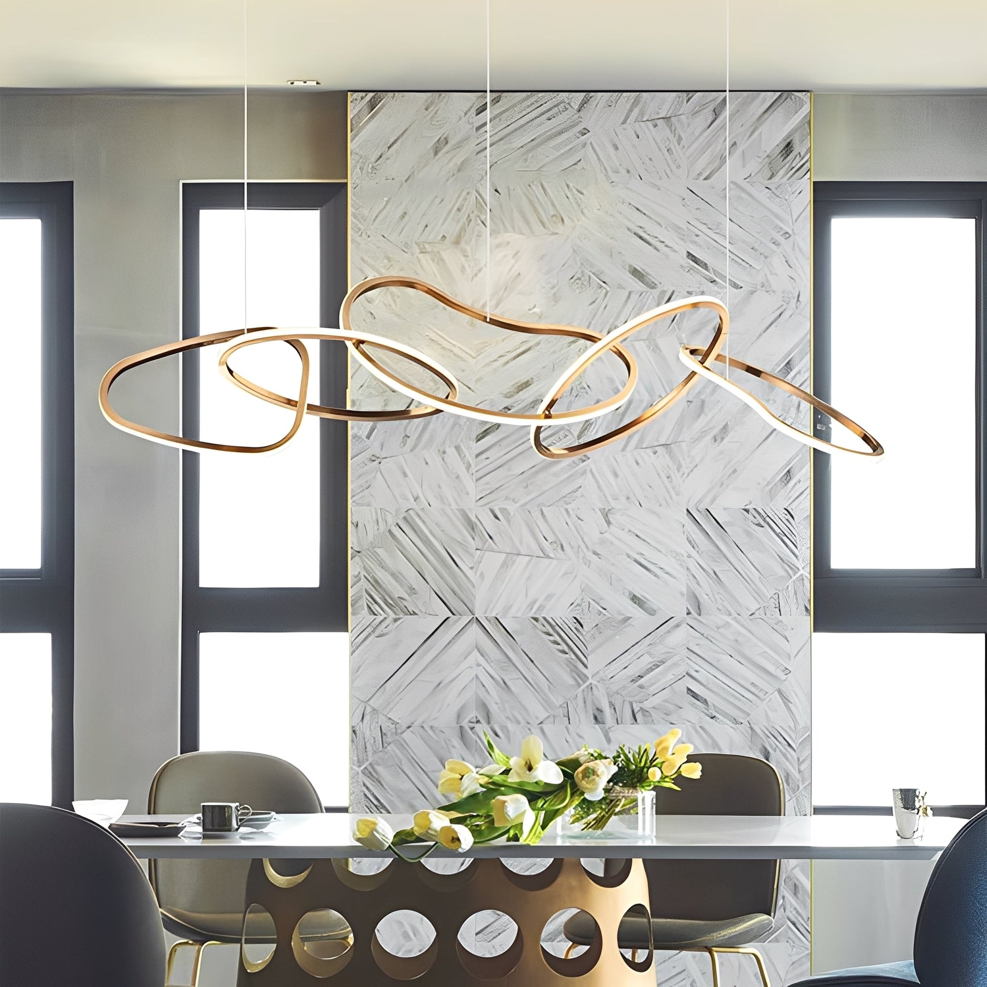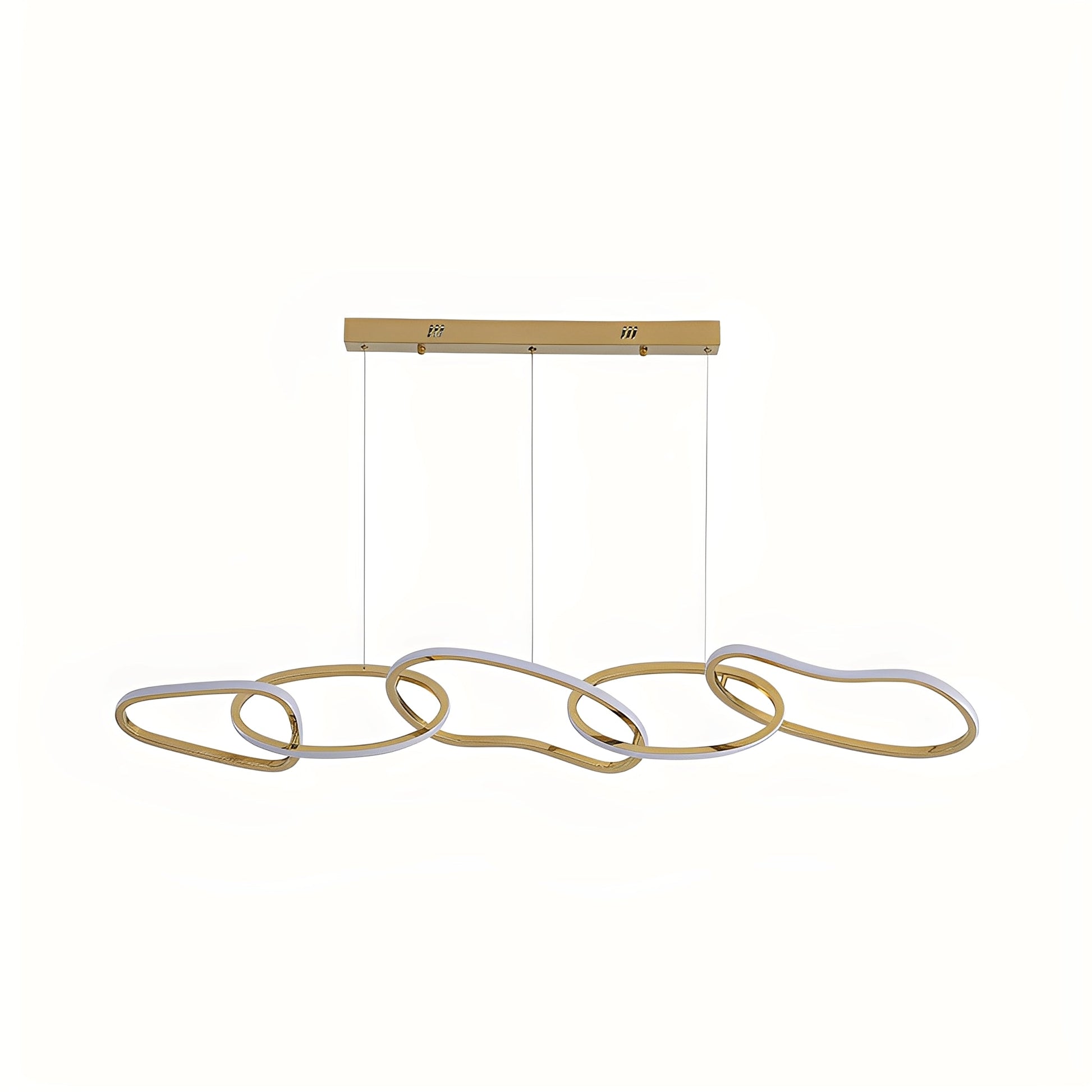 Disponible en quatre ou cinq anneaux avec gradation continue, la lampe offre des options d'éclairage flexibles. Avec des tailles de 1000x280x250mm (quatre anneaux) et 1200x280x250mm (cinq anneaux), elle s'adapte parfaitement aux pièces de 15 m² à 30 m² et fonctionne avec une tension de 111V~240V.