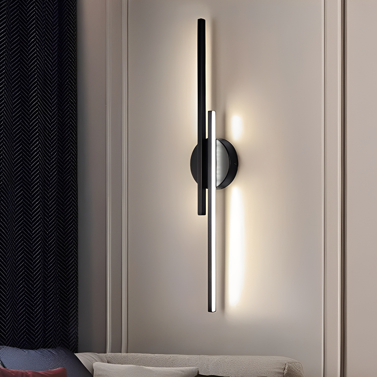 El aplique Denise impresiona con su moderno diseño de doble línea y establece acentos de luz elegantes en paredes de fondo. Es perfecto para salas de estar, dormitorios o pasillos y proporciona un ambiente agradable y elegante.