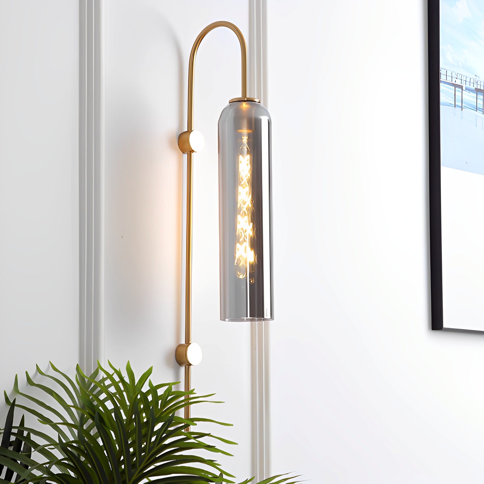 - Esthétique rétro élégante : Abat-jour en verre cannelé et bras courbé au design mid-century