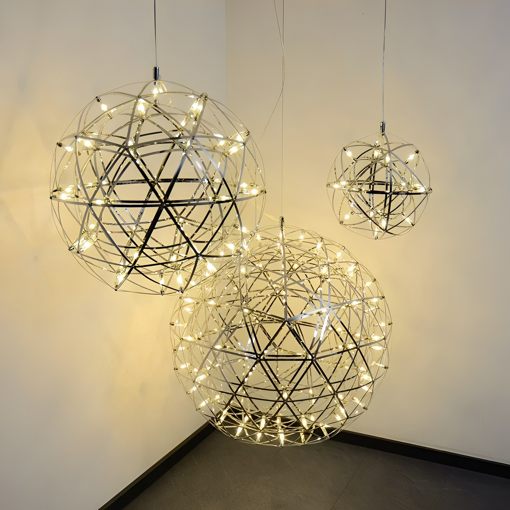 - Design : Lampe suspendue LED sphérique en métal