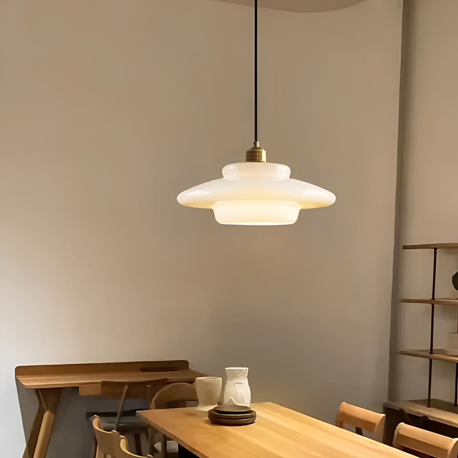 - Caractéristiques: Abat-jour en verre crème, design minimaliste, ambiance lumineuse chaleureuse