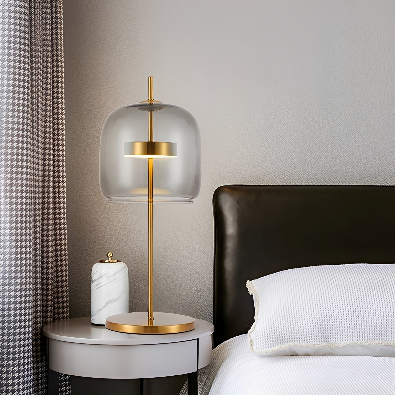 Rencontrez Kimel — une lampe de table LED élégante qui allie l'élégance du verre à une finition électroplaquée raffinée. Disponible en gris fumé ou marron, elle apporte une lueur chaude et ambiante aux salons, chambres ou à votre chevet, rehaussant tout espace moderne avec une simplicité intemporelle.