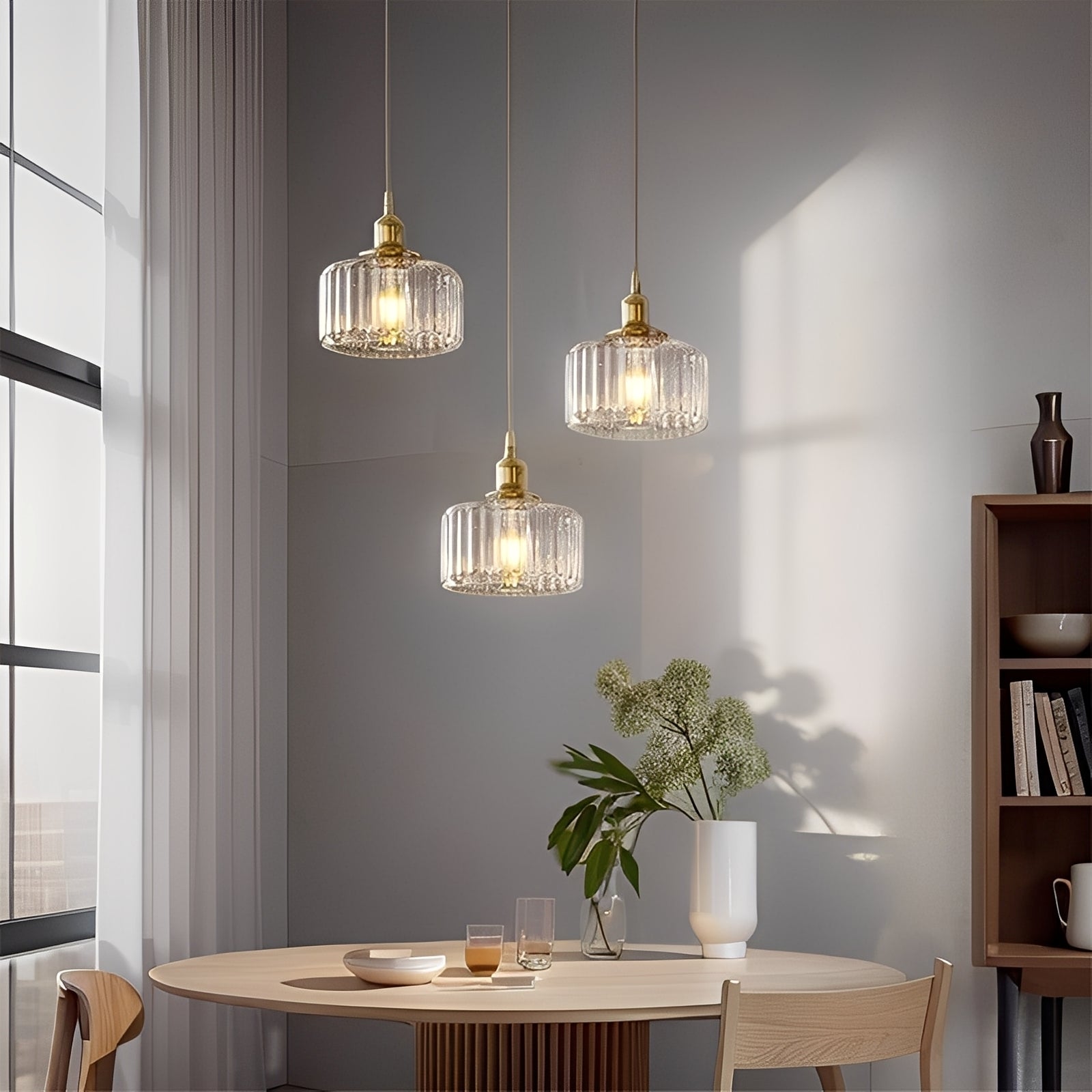 La Riku La suspension apporte le charme de l'esthétique rétro japonaise dans votre maison. Avec son abat-jour en verre transparent et son élégant cadre en laiton elle allie l'artisanat traditionnel à un look nordique moderne. Cette lampe crée une atmosphère chaleureuse et élégante, idéale pour les salons, les salles à manger ou les couloirs.