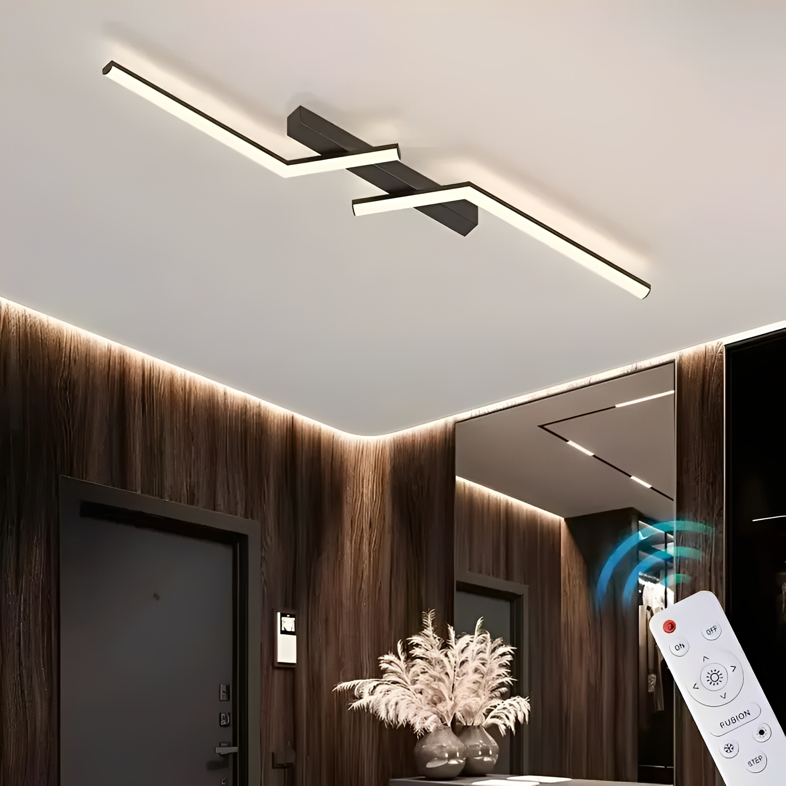 Zoren combine la simplicité scandinave avec une fonctionnalité moderne – le plafonnier élégant ajoute des accents stylés dans le couloir, le hall ou le vestiaire et assure une lumière uniforme et agréable. Grâce aux couleurs de lumière commutables et à la gradation en continu optionnelle par télécommande, Zoren s'adapte à chaque ambiance – de chaud et confortable à lumineux et fonctionnel. Idéal pour les intérieurs minimalistes et modernes avec une touche de luxe.